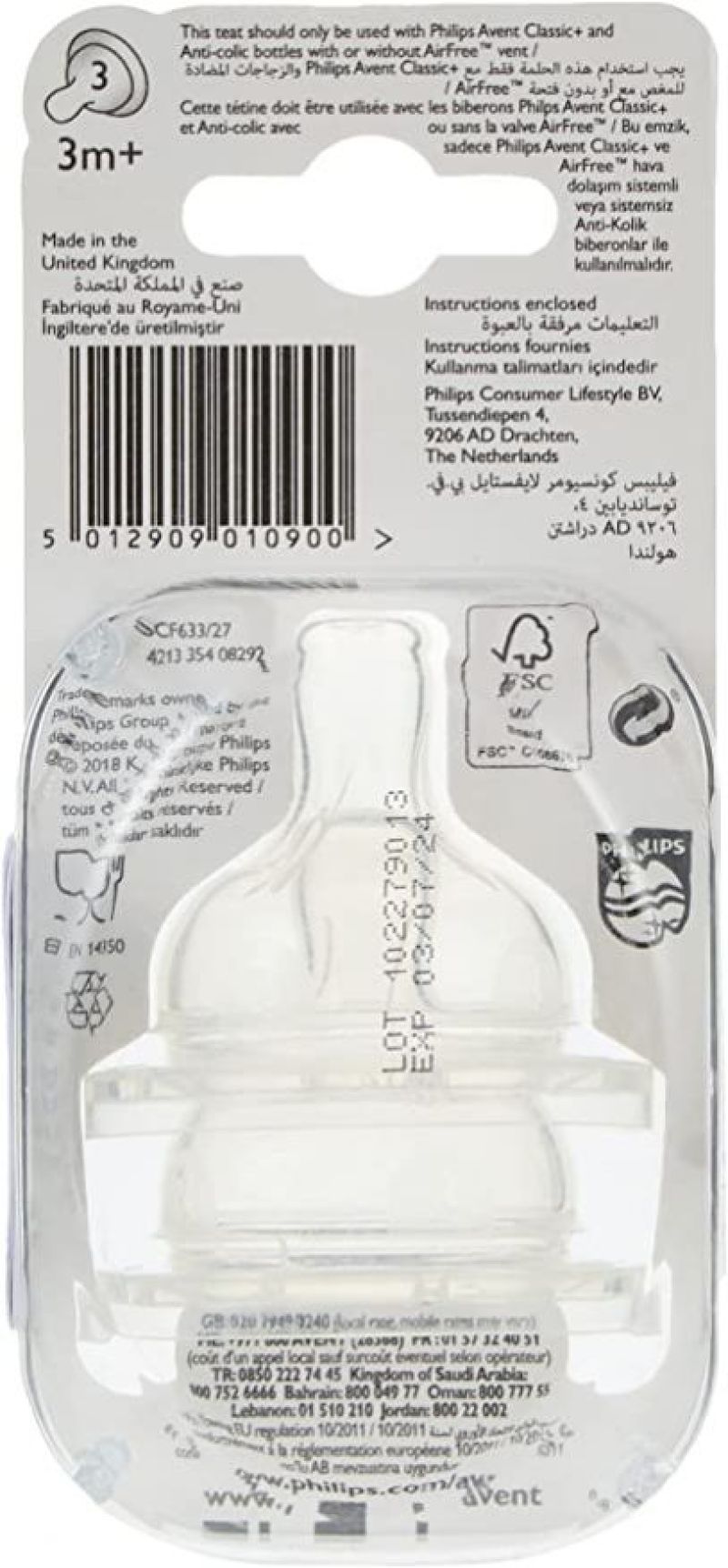 حلمات افينت كلاسيك بلس بثلاثة فتحات من فيليبس، عبوة من 2 قطعة