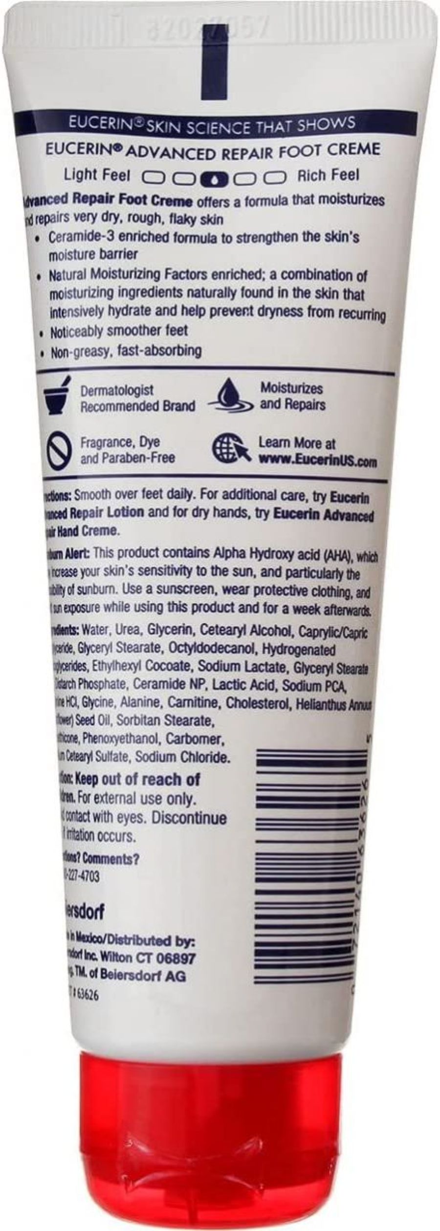 يعمل على تنعيم وإصلاح القدمين والكعوب الخشنة والمتشققة مع كريم يوسيرين أدفانسد ريبير للعناية بالقدمين، والذي تم تركيبه خصيصًا لترطيب وترطيب البشرة بشكل مكثف. هذه التركيبة الفريدة غير الدهنية غنية بألفا هيدروكسي المقشرة لتقشير القدم والكعب أكثر نعومة في غضون أسبوعين